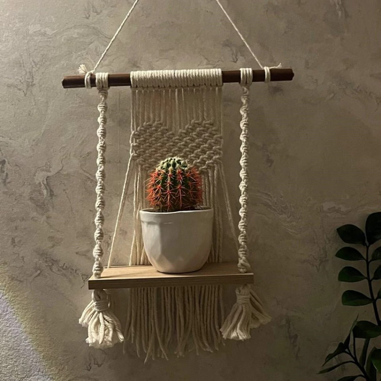 شلف قلبی مکرومه بافته شده با نخ مکرومه کتان پنبه جنس شلف ام دی اف