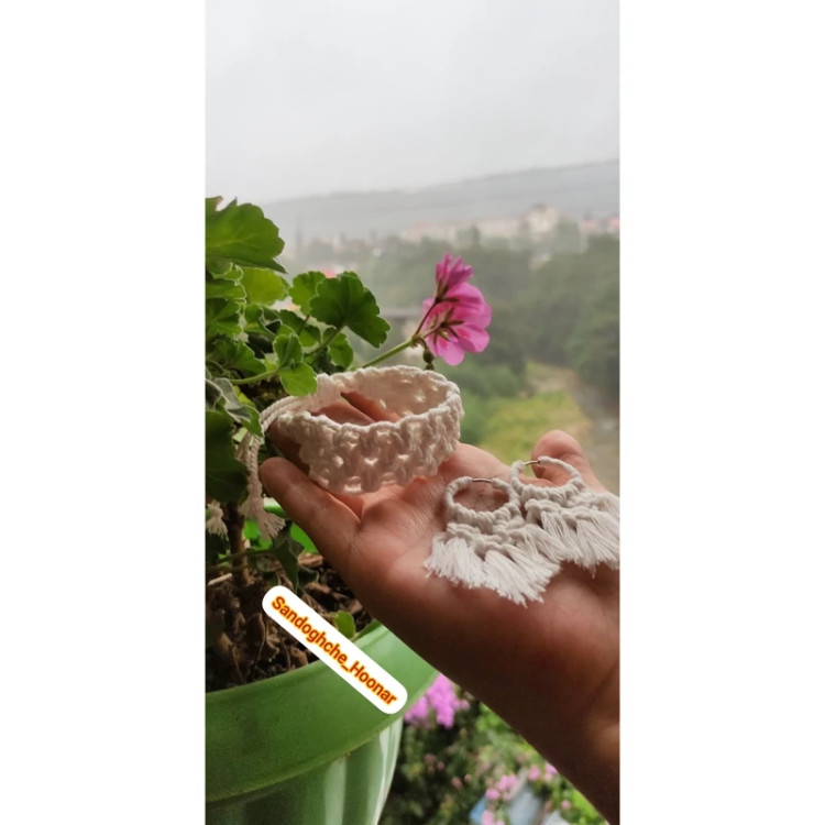 دستبند و گوشواره مکرومه بافی